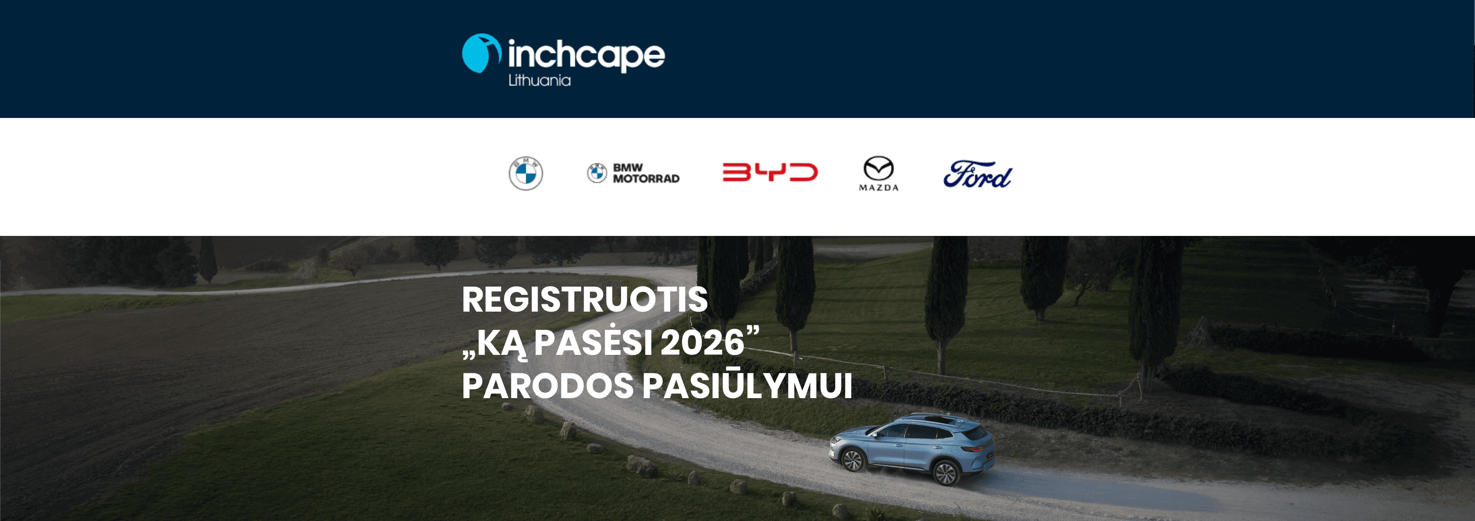 Esu informuotas, kad paspausdamas „Registruotis važiavimui“ UAB „Inchcape Motors“ ir UAB Inchcape Auto (priklausomai nuo Jūsų pasirinktos automobilio markės) tvarkys mano aukščiau pateiktus asmens duomenis siekiant susisiekti su manimi ir pateikti pasiūlymą pagal užpildytą užklausą, kaip aprašyta šių bendrovių Privatumo politikose.